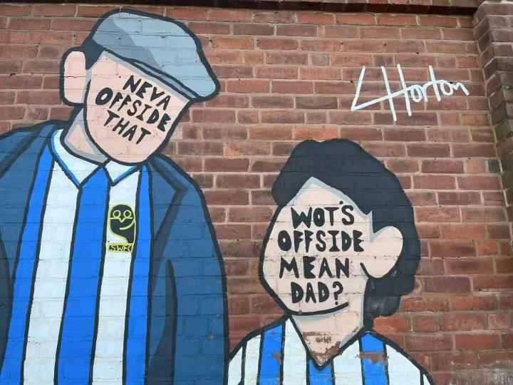 看球是一件可以陪伴一生的兴趣。走在谢周三希尔斯堡球场外的围墙看到这样一副涂鸦,便会理解足球为什么可以是、会是或者真的是生活的一部分?