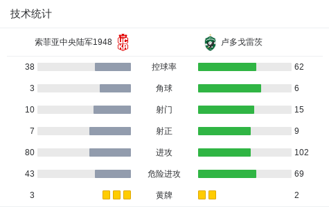 第40分钟,索菲亚中央陆军1948球员索夫雷罗打入一球。