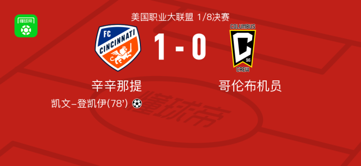 辛辛那提1-0哥伦布机员,凯文-登凯伊一剑封喉
