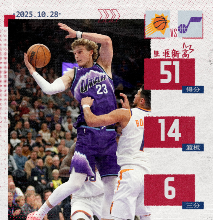 这赛季,爵士队想要战绩,马尔卡宁也是全力爆发,今天首发出战45分钟,32投14中拿到了51分14篮板3助攻的数据,力压布克的34分5篮板10助攻。马尔卡宁在关键时刻还连续得分,顶住了太阳队的反扑,最终帮助爵士队拿下了比赛的胜利。