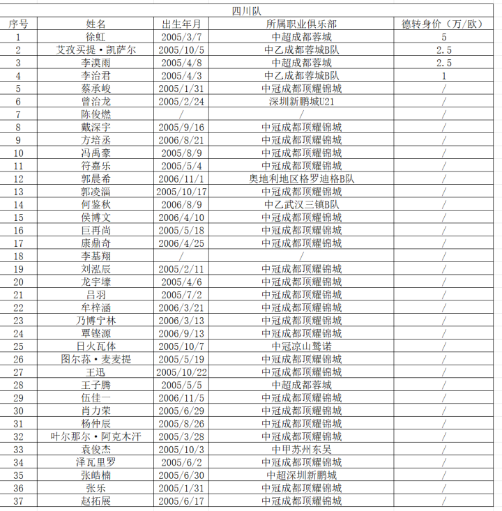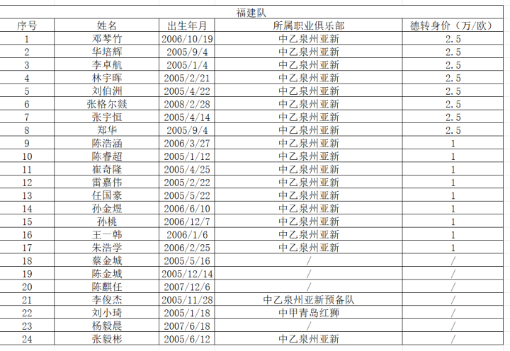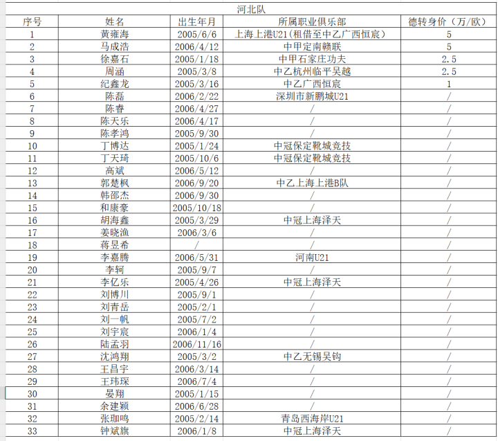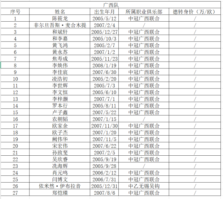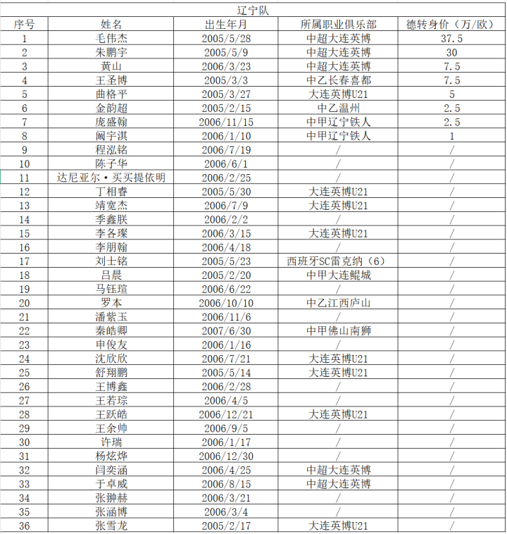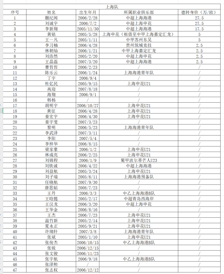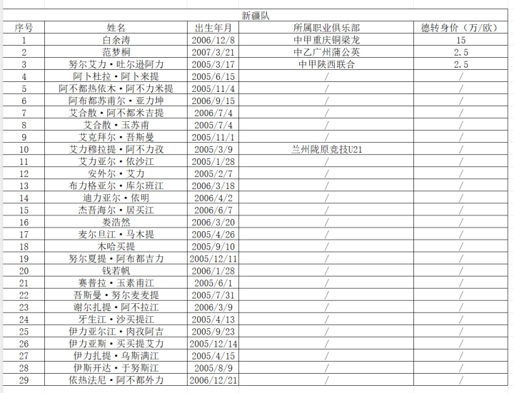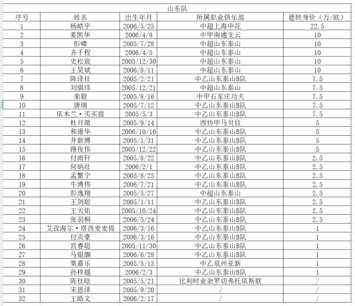 (以下数据为自行在全运会数据库整理,仅供参考,其中俱乐部与身价取自德转,如有疏漏欢迎指正!最终22人名单预计在10月31日联席会后公布)