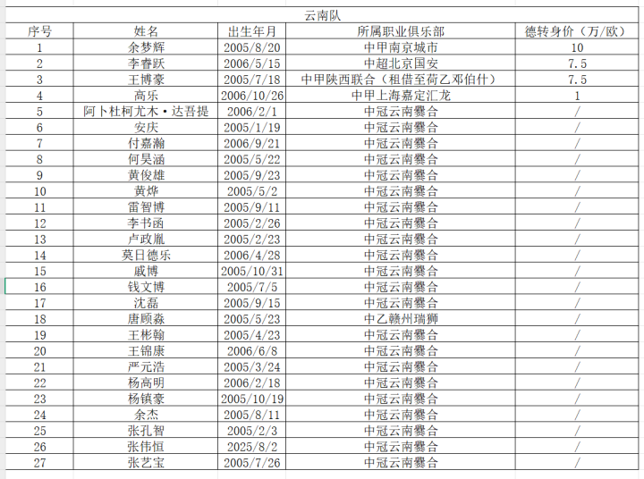 云南队完全以中冠云南爨(cuan)合队组成,效力荷乙邓伯什的王博豪将代表云南队出战。