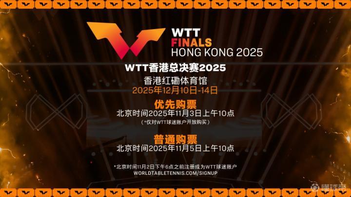 10月29日,WTT官宣香港总决赛门票,决赛最高票价为2080元。香港总决赛2025将于12月10日至14日,在中国香港红磡体育馆举行。
