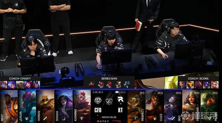 北京时间10月29日,英雄联盟S15世界赛1/4决赛第二场,LCK赛区三号种子KT对阵LCP赛区一号种子CFO。本局CFO上路进行轮换,Rest换下了Driver。本局KT辅助Peter泰坦又在前期起了节奏,连续击杀CFO中路HongQ沙皇,KT又是一场碾压局取胜,2-0拿到赛点。