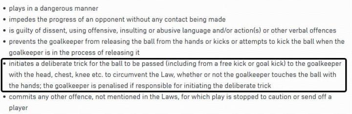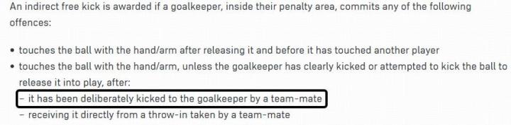 各位球迷都很熟悉足球规则,那么一定对我上面的描述有疑问:老师老师,规则不是说不允许门将用手接膝盖以下部位有意识回传球吗?为什么还能出现这种操作?