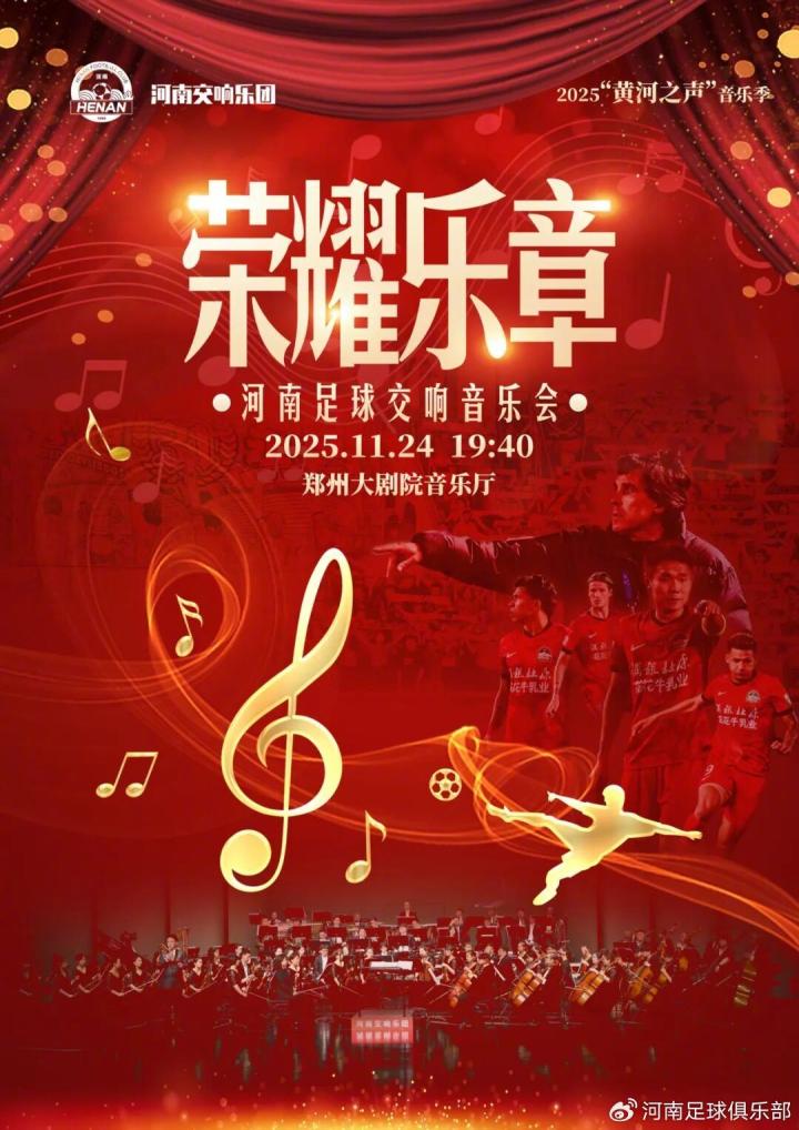 北京时间10月29日,河南队官方消息,河南交响乐团与河南足球俱乐部将联手打造「荣耀乐章」足球主题交响音乐会,票价120元起。