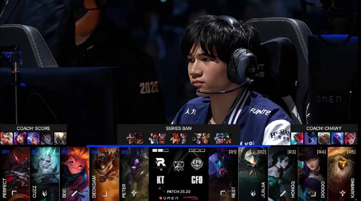 第22分钟,Peter牛头先被抓掉,CFO rush掉厄塔汗后撤退不及时,虽然Bdd佐伊被终结,但是Cuzz破败王捡魂启动,KT打出1换3;