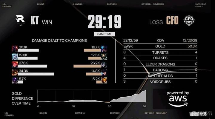 第28分钟,KT拿下火龙魂,团灭CFO后带走比赛;