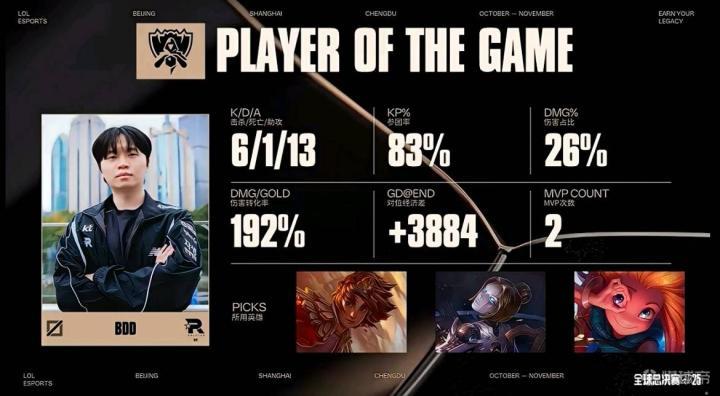 本局MVP给到拿出招牌英雄佐伊的Bdd,他的佐伊在全球总决赛上仍然保持100%的胜率!