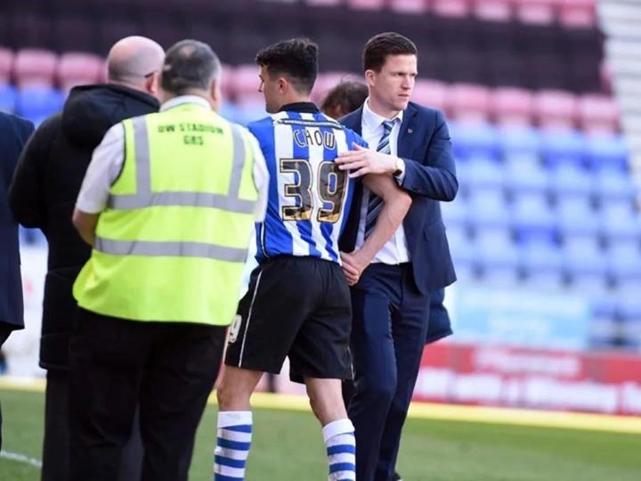 同年4月18日,回到主场,他迎来自己第一次首发。比赛第26分钟,他接队友右路传中,用一记头球攻破了布莱顿的大门,成功斩获处子球。2015-2016赛季,他帮助维冈竞技拿到英甲冠军成功杀入英冠联赛。周定洋十分顺利地开启了自己的职业生涯。