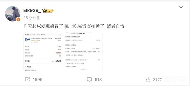 北京时间10月29日,BLG下路选手Elk更新了微博,表示自己昨天感冒了,吃完饭就睡了。这很可能是对BLG商K事件的一份不在场证明。