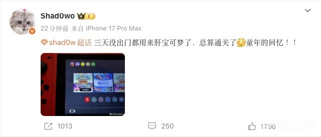 shad0w选手则表示他三天没出门在肝宝可梦,并且他的IP属地位于北京。