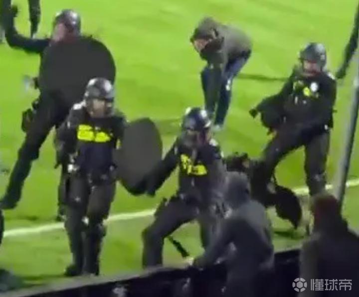 几名邓伯什的极端支持者也冲破看台隔离区,向客队看台方向靠近。