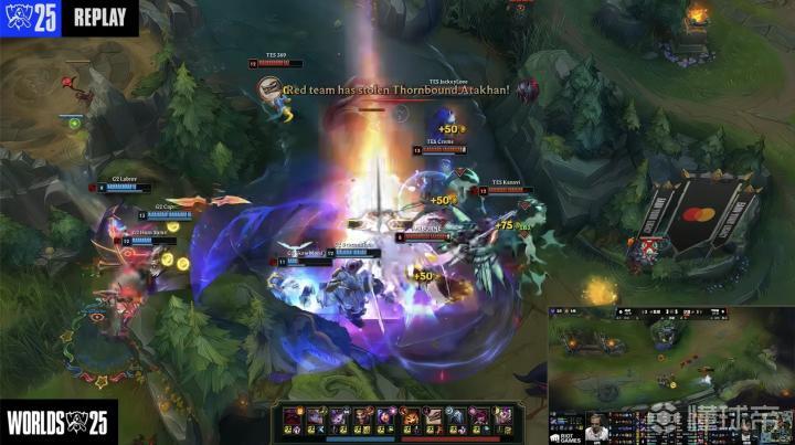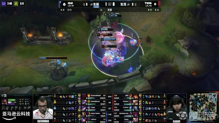 第20分钟,G2先动厄塔汗,结果被Kanavi极限抢掉!随后因为打厄塔汗导致阵型和血量劣势,TES打出0换3;