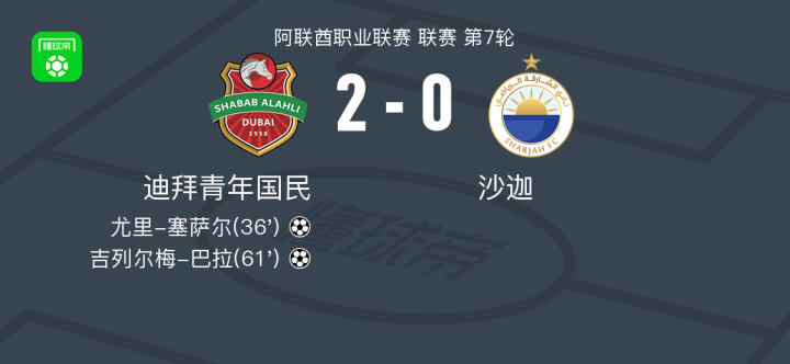 迪拜青年国民2-0沙迦,尤里-塞萨尔建功,吉列尔梅-巴拉锁定胜局