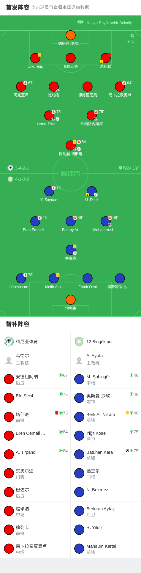 科尼亚体育4-212 Bingölspor,梅利赫-博斯坦1射1传,比约洛建功