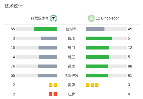 下半场补时第5分钟,科尼亚体育球队塔什奇吃到红牌。