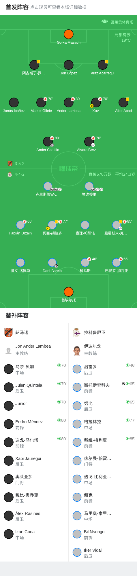 第17分钟,萨马诺球员Álvaro Berzosa助攻Ander Castillo打入一球。
