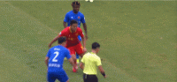 第79分钟,科菲倒地情况下附加动作,被裁判红牌罚下,嘉定汇龙十人应战