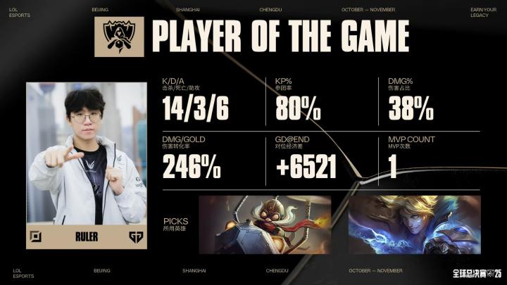 本局MVP毫无疑问给到GEN发挥出色的下路Ruler的EZ。