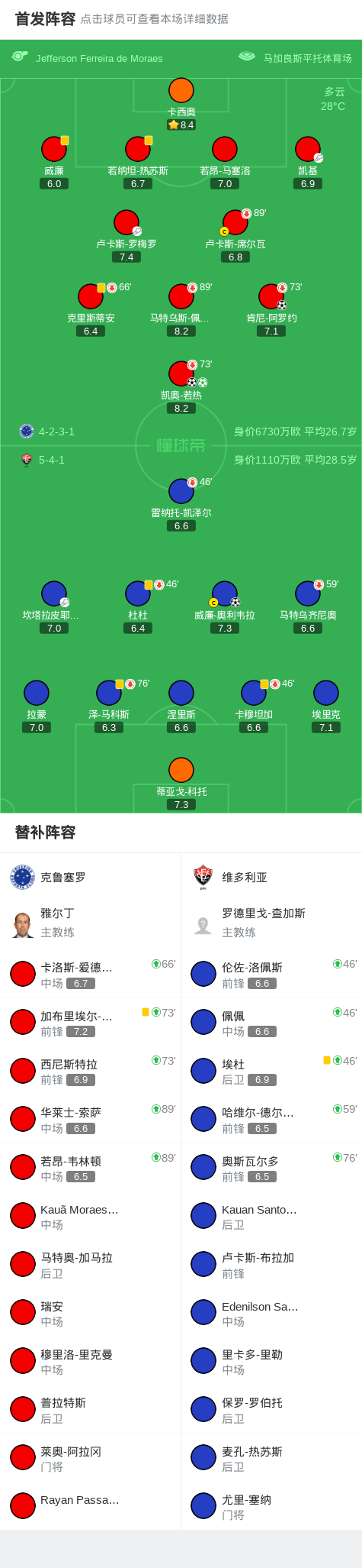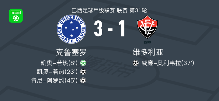 克鲁塞罗3-1维多利亚,凯奥-若热双响,肯尼-阿罗约破门