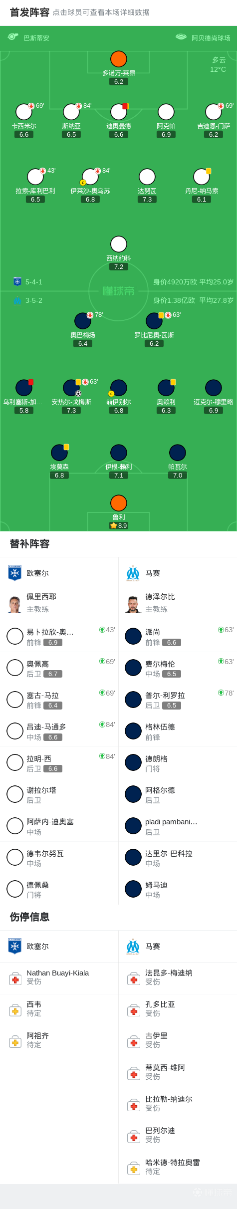 十人马赛1-0十人欧塞尔,戈梅斯制胜,加西亚、迪奥曼德染红