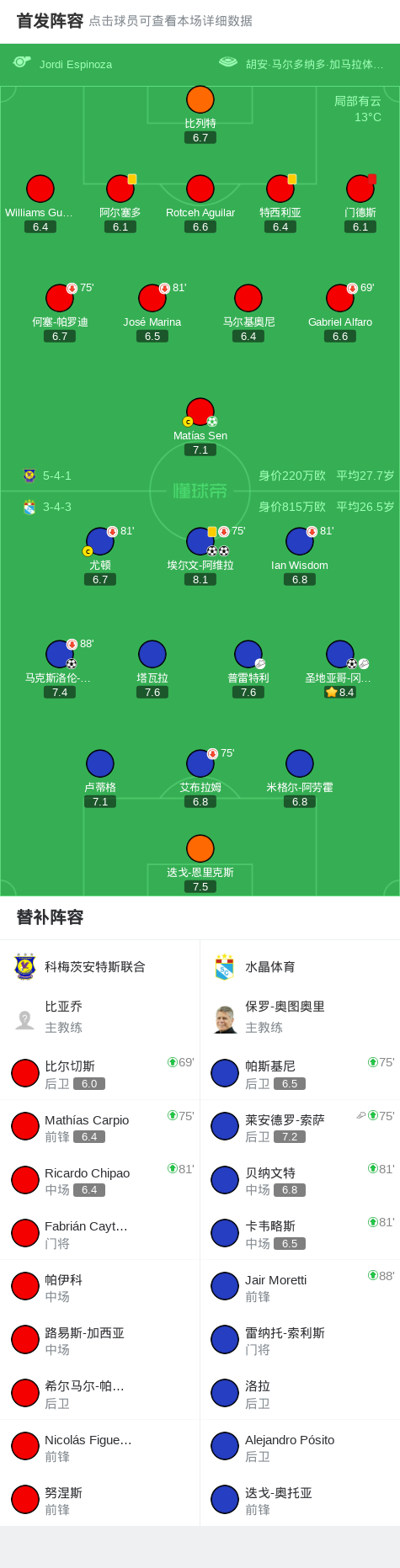 第72分钟,水晶体育球员圣地亚哥-冈萨雷斯助攻埃尔文-阿维拉打入一球。