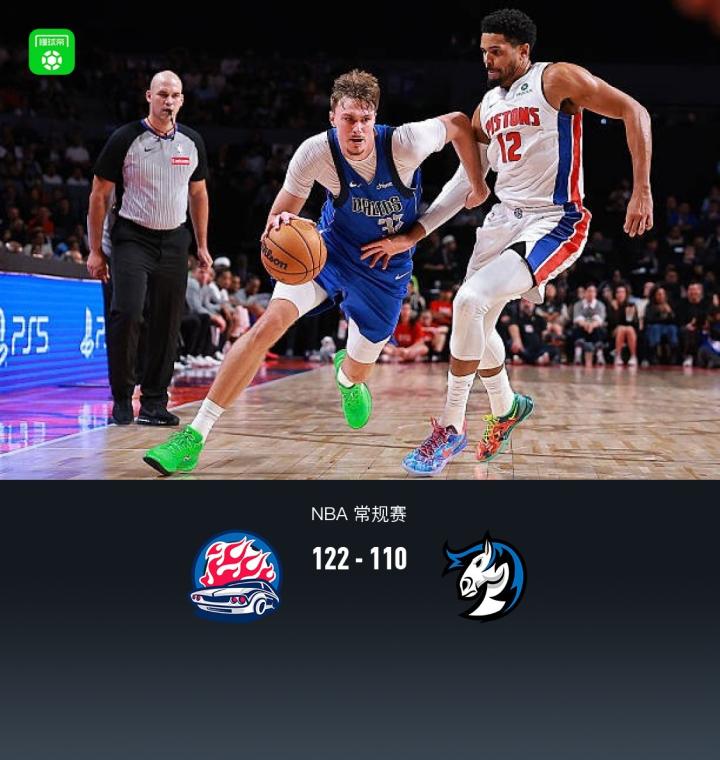第四节活塞杰伦-杜伦拿下8分,独行侠拉塞尔拿下9分,最终活塞122-110战胜独行侠