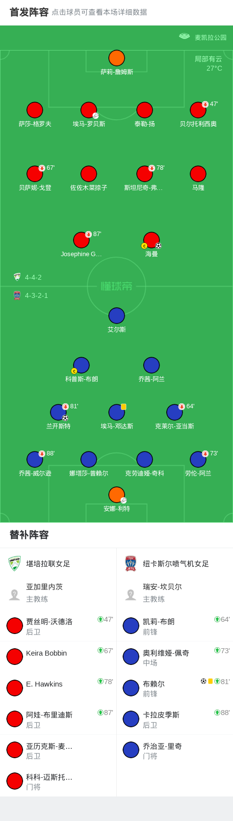第33分钟,纽卡斯尔喷气机女足球员安娜-利特助攻兰开斯特打入一球。