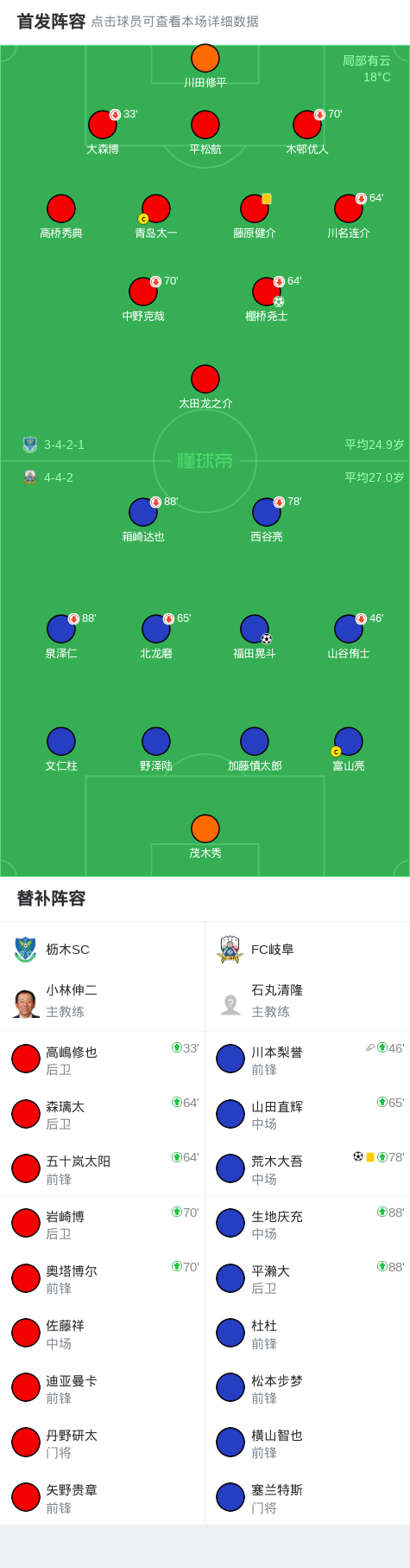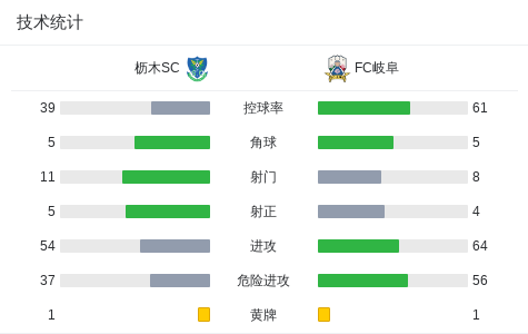 FC岐阜2-1逆转枥木SC,福田晃斗、荒木大吾破门
