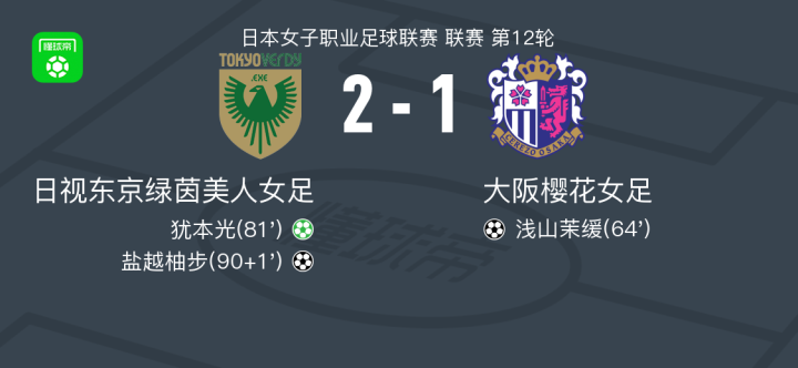 日视东京绿茵美人女足2-1逆转大阪樱花女足,盐越柚步建功,犹本光点射破门