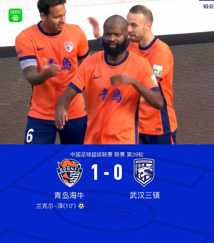 北京时间11月2日,中国足球超级联赛第29轮,青岛海牛坐镇主场迎战武汉三镇。比赛中,青岛海牛球员兰克尔-泽攻入全场唯一进球,帮助球队取得领先。凭借这一进球,青岛海牛以1-0战胜武汉三镇,全取三分。