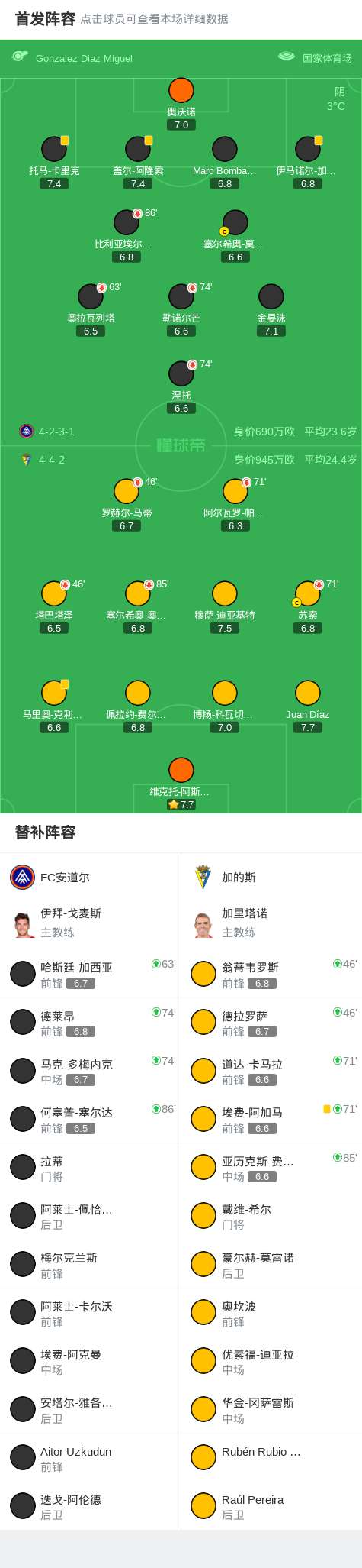 FC安道尔0-0加的斯,哈斯廷-加西亚错失良机战报bot @懂球帝2025-11-02 23:14北京时间11月2日西班牙足球乙级联赛 联赛 第12轮,FC安道尔主场对阵加的斯。最终比分FC安道尔 0-0 加的斯。点击查看本场比赛详细数据>>点击查看西乙完整积分榜>> 球队阵容 技术统计 展开更多