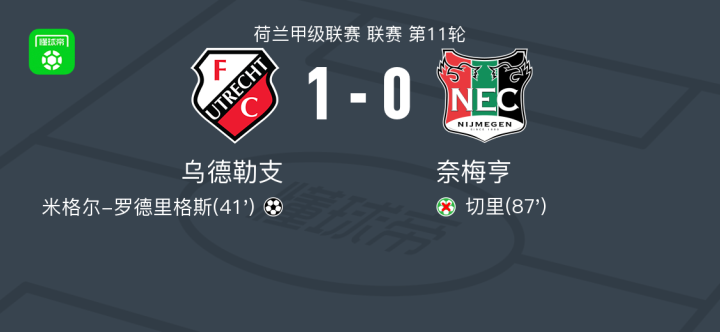 乌德勒支1-0奈梅亨,米格尔-罗德里格斯助球队取胜