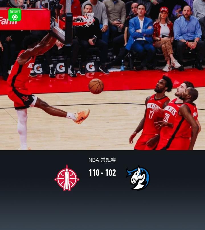 火箭110-102残阵独行侠迎4连胜,申京26+11+6,弗拉格12+5