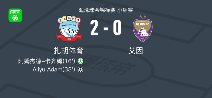 扎胡体育2-0艾因,阿姆杰德-卡齐姆破门,Aliyu Adam锦上添花