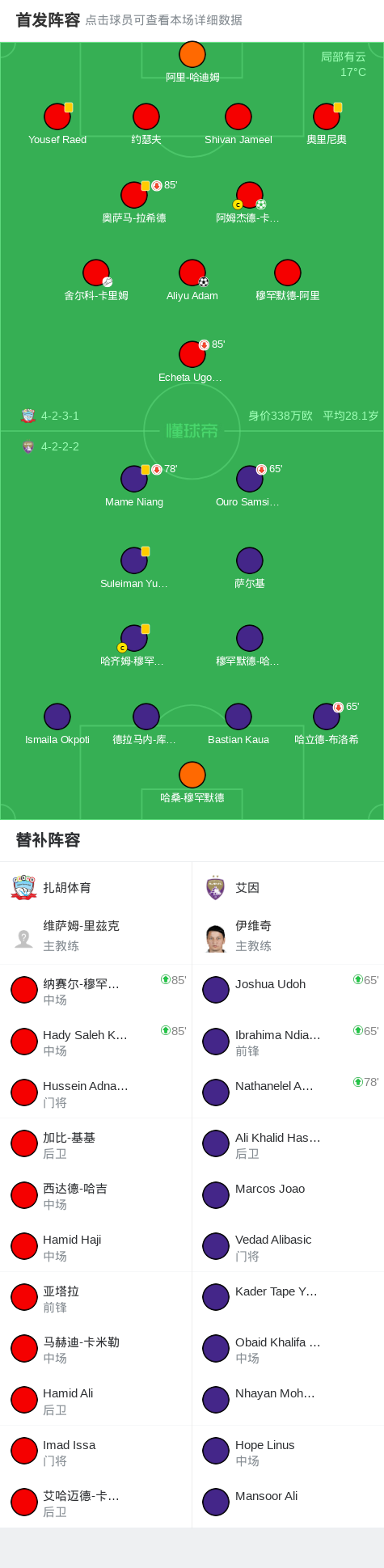 第33分钟,扎胡体育球员舍尔科-卡里姆助攻Aliyu Adam打入一球。