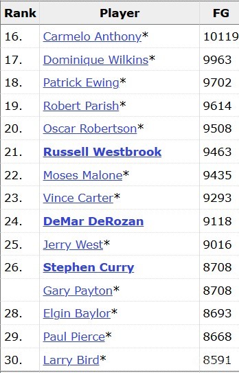 据官方统计,库里在本场比赛超越了加里-佩顿,成为了NBA历史上运动战进球数第26多的球员。在他身前的是杰里-韦斯特,两者大概有300记进球左右的差距。
