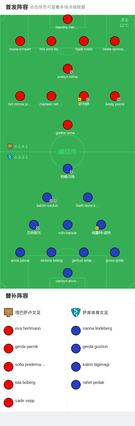 萨库体育女足4-3塔巴萨卢女足,katriin saulus双响,特赖贝格破门