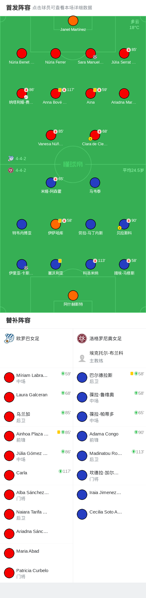 上半场补时第2分钟,欧罗巴女足球员纳塔利娅-费尔南德斯助攻Sara Manuela López Rubio打入一球。