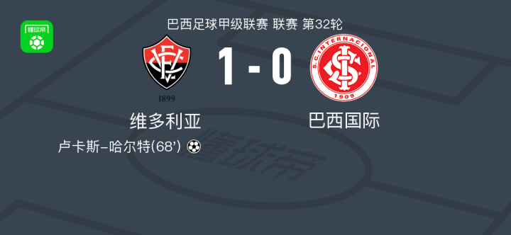 维多利亚1-0巴西国际,卢卡斯-哈尔特一击制胜