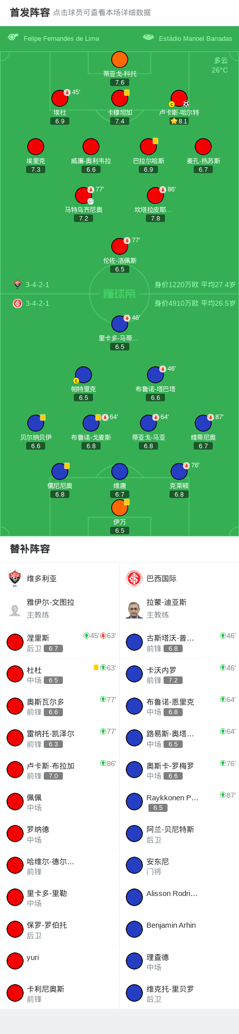 第68分钟,维多利亚球员马特乌齐尼奥助攻卢卡斯-哈尔特打入一球。