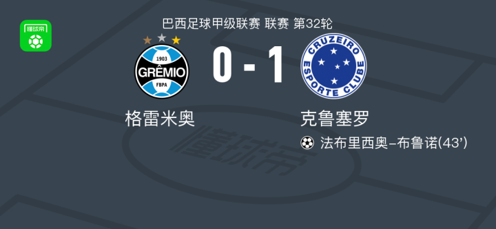 克鲁塞罗1-0格雷米奥,法布里西奥-布鲁诺一锤定音战报bot2025-11-06 08:58北京时间11月6日巴西足球甲级联赛 联赛 第32轮,格雷米奥主场对阵克鲁塞罗。克鲁塞罗法布里西奥-布鲁诺破门。最终比分格雷米奥 0-1 克鲁塞罗。点击查看本场比赛详细数据>>点击查看巴甲完整积分榜>>精彩瞬间第43分钟,克鲁塞罗球员威廉助攻法布里西奥-布鲁诺打入一球。 技术统计 展开更多