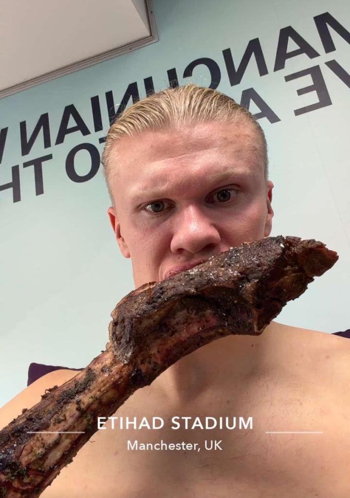 快速补充能量,哈兰德晒自己赛后吃烤羊排照片