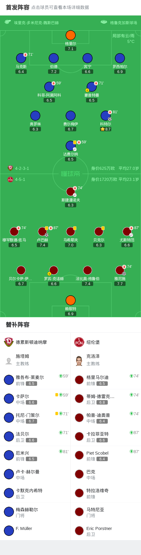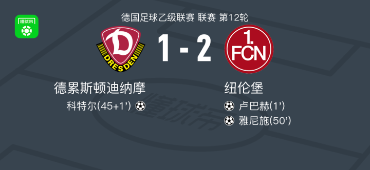 纽伦堡2-1德累斯顿迪纳摩,雅尼施、卢巴赫破门