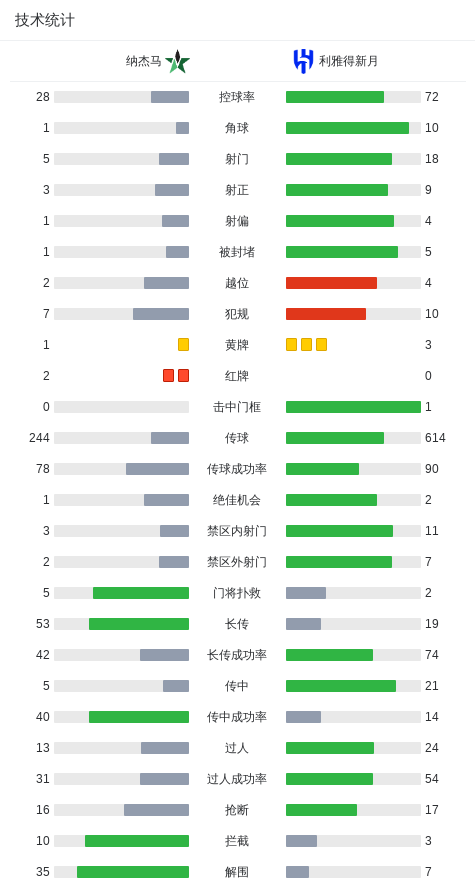 第58分钟,纳杰马球队拉萨罗吃到红牌。