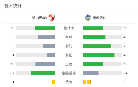 上半场补时第1分钟,忠南牙山球员Si-hoo Park打入一球。