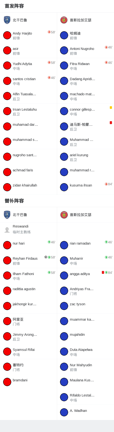 下半场补时第2分钟,普斯拉加艾瑟球队angga aditya吃到红牌。