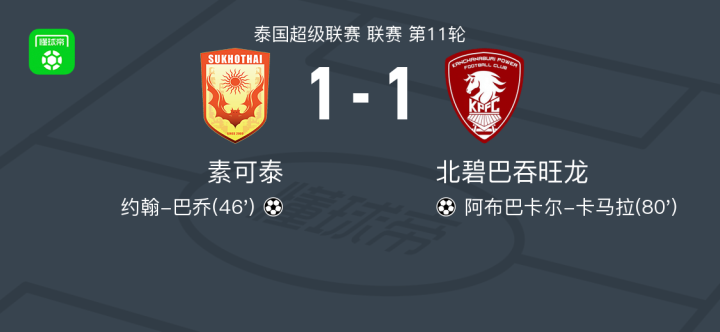 素可泰1-1北碧巴吞旺龙,约翰-巴乔破门,阿布巴卡尔-卡马拉扳平比分