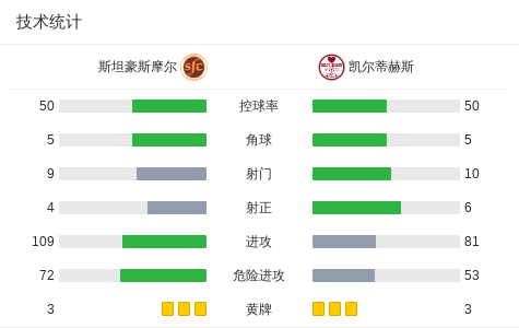 第71分钟,凯尔蒂赫斯球员Ricco Diack打入一球。